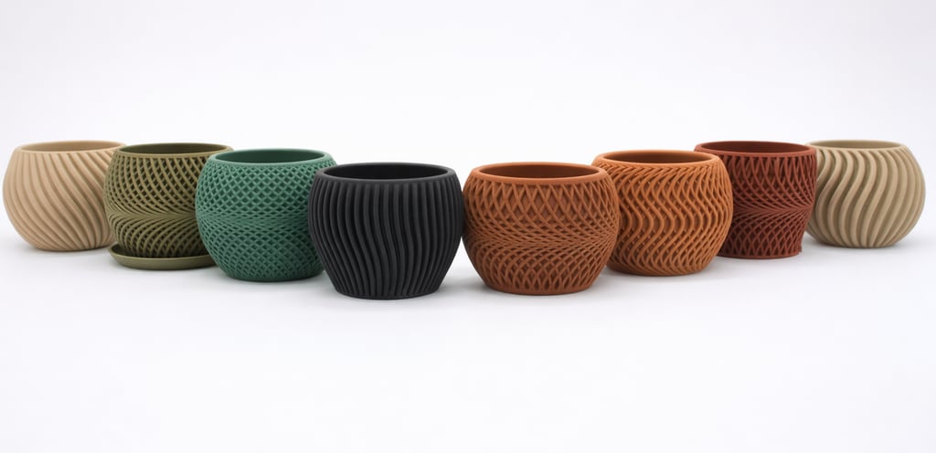 Unique Designer Flower Pots Crafted with Wood-Based 3D Printing